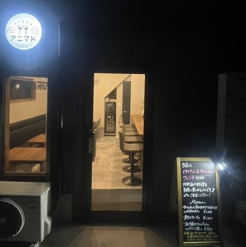 看板のネオンが目印の外観。ガラス張りの扉で中の様子も見えるので入りやすいです。ぜひ初めての方もお待ちしています♪